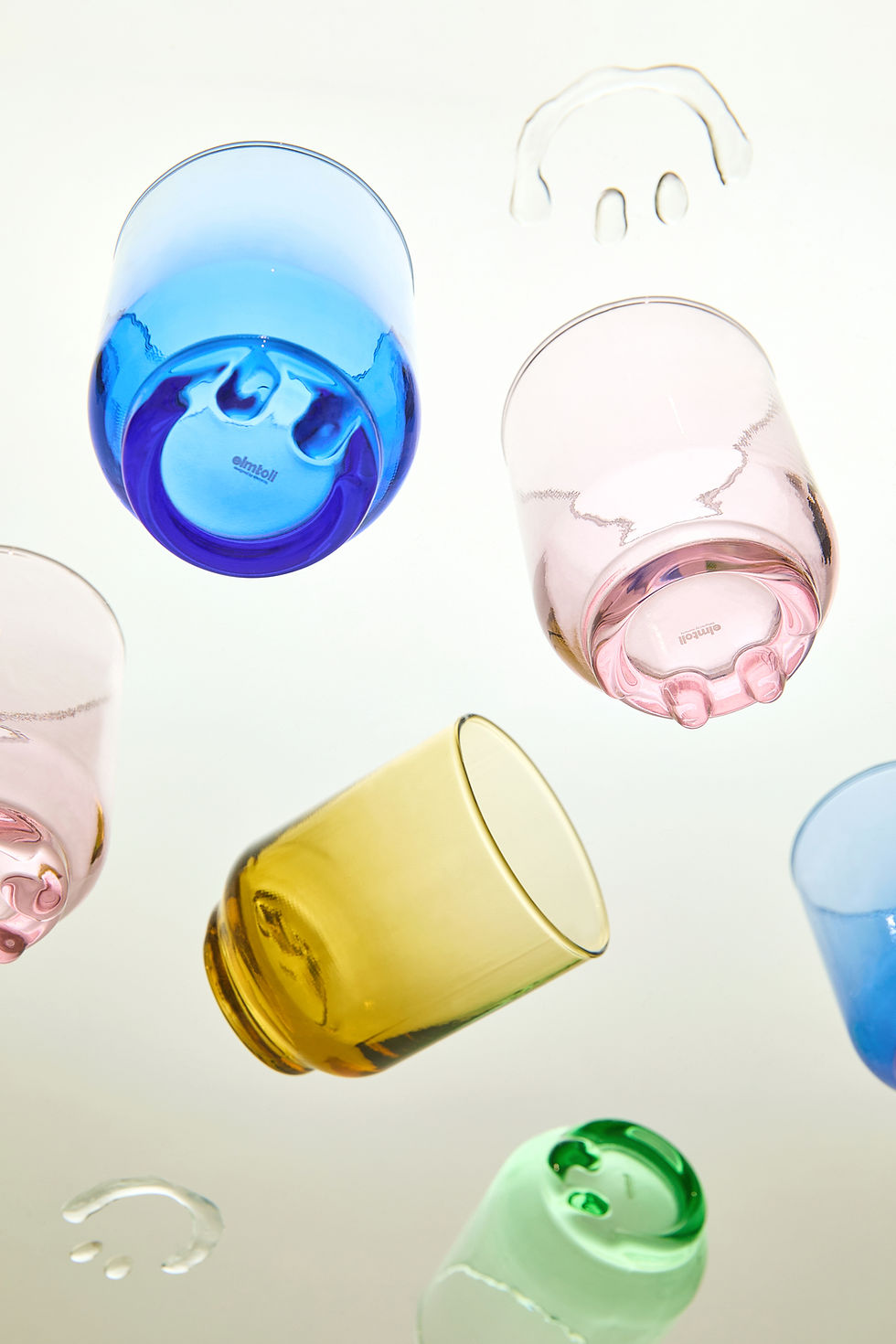 When a cold GRINN Glass meets warm air, condensation forms naturally on its surface. As droplets gather, they follow the curved path of the embossed smile on the glass base.